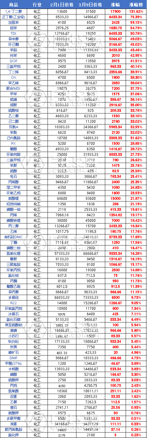 丁二醇、正丁醇、加氫苯、粗苯、TDI、異辛醇、環(huán)己酮、苯胺、純苯、DOP、三氯甲烷漲幅居前,均超40%0gd膩?zhàn)幽z粉_可再分散乳膠粉_羥丙基甲基纖維素_聚丙烯纖維_木質(zhì)纖維素_北京萬(wàn)圖明科技有限公司