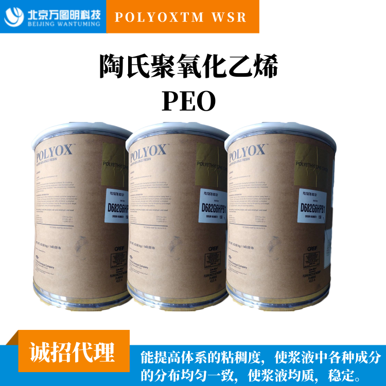 POLYOXTM WSR 308聚氧化乙烯PEO用做水泥添加劑,能提高體系的粘稠度,使?jié){液中各種成分的分布均勻一致,使?jié){液均質(zhì)、穩(wěn)定,并防止?jié){液產(chǎn)生沉降分層和泌水,提高了保水率,保水性能。